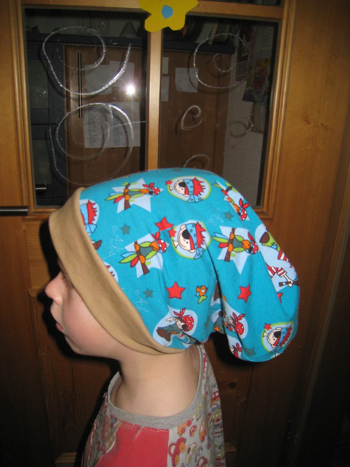 Da aber Basecapes noch etwas "wenig" sind-grad bei den Ohren, habe ich gestern schnell für junior eine Beanie genäht. Und schnell heisst schnell, ich glaube mehr als 15 Minuten braucht man nicht für so ein Teilchen.